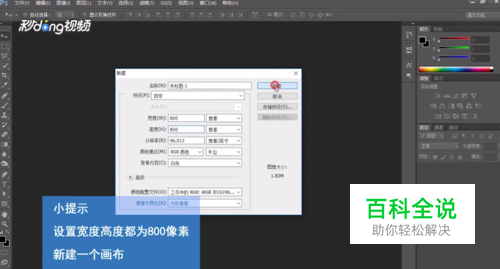 首先打开Ps,左键依次单击“文件”——“新建”,新建宽度、高度都为800像素的画布