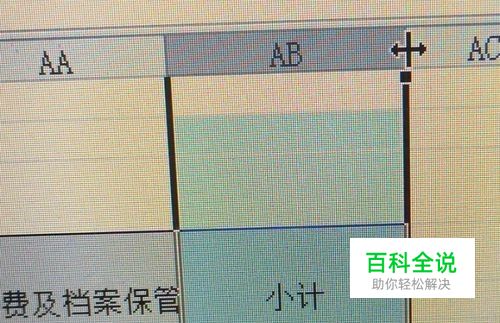我们选最后一列,将鼠标至于下图标识出的两列之间,当鼠标的图像变成“左右双向箭头”时,点击并拖动鼠标往左,将列宽调整到位。