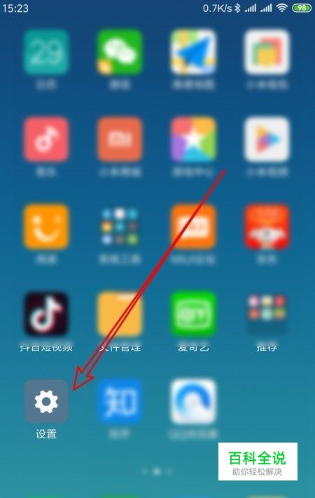 我们在手机上左右的滑动屏幕,找到小米手机的“设置”的图标。