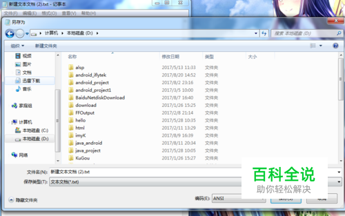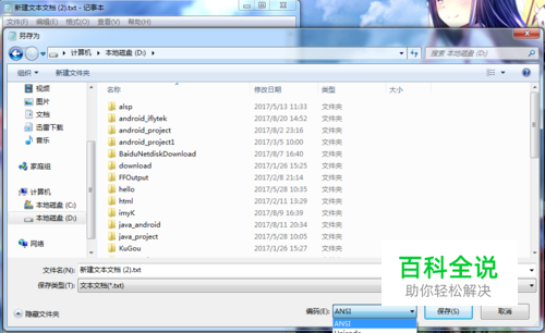 这是为什么呢?我们再写一个TXT文档,写入你好,重新打开文档后,发现是可以正确显示的,我们看一下他的编码方式。通过“另存为”,可以发现编码方式为ANSI