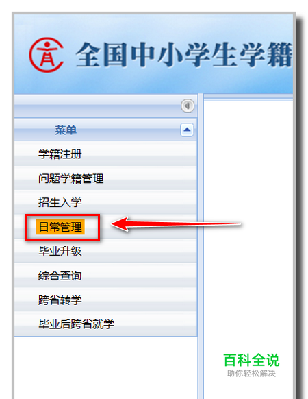 进入全国中小学学籍系统后,点击上面的【学籍管理】。