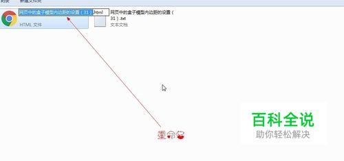 1.如图所示,我们新建一个记事本,并将记事本的名字改为“网页中的盒子模型 内边距的设置(31).html”,并回车键确定,以使文件转化为浏览器可以打开 的html网页文件。