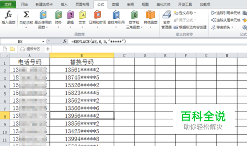 点击确定后,你会看到第一个电话号码的6-10位都变成了星号,就完成了替换功能。