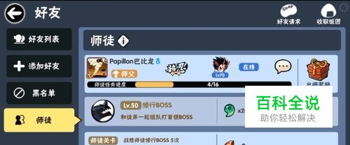 首先打开好友列表,可以看大在最下方有师徒一栏,在一定级别下,我们可以和师父共同修行打BOSS。