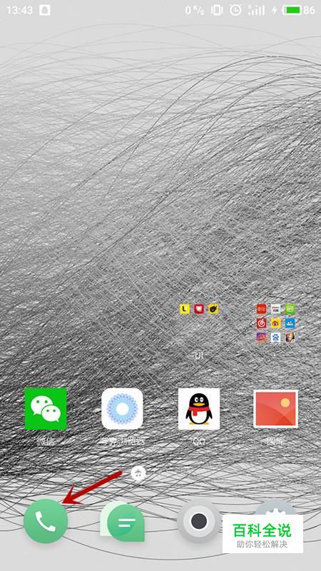 要将陌生手机号码加入黑名单,解锁手机进入主界面,选择“通话”