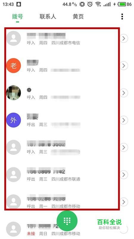 进入通话记录后,找到陌生号码,选择右侧“箭头符号”