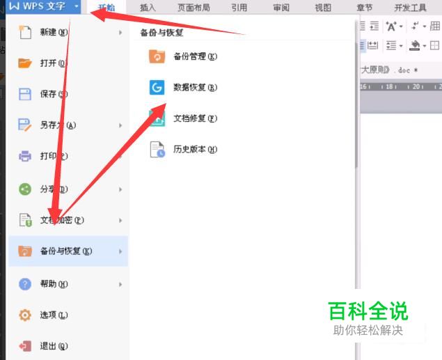 如下图所示,直接打开wps左上角,点击后弹出下图界面。 然后点击备份与恢复。 点击备份管理。