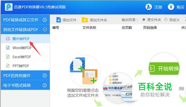 下载安装完之后,打开软件,如图所示在“其他文件转成PDF”下拉列表中选择“图片转PDF”。