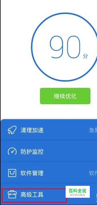 然后点击进入“QQ手机管家”,如图找到“高级工具”,点击进入