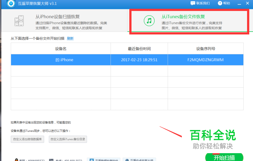 将电脑与苹果手机连接,打开互盾苹果恢复大师,运行软件后,软件会检测到手机的数据,我们这里的演示,选择“从iTunes备份文件恢复”