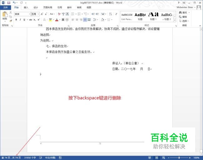 当word中有一个空白页的时候,可以在空白页前页尾端按del键进行删除