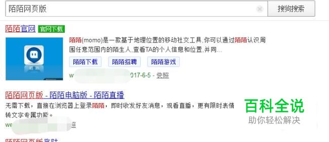 打开搜狗浏览器,在搜索栏输入:陌陌网页版点击搜索。然后进入陌陌登陆网页