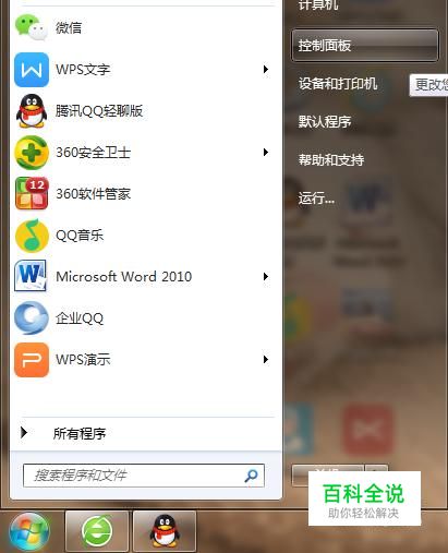 左击左下角的开始菜单,选择控制面板。