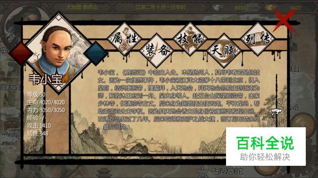 最后去鹿鼎山触发小宝和康熙分别的剧情,打一场,打完之后小宝变身,血内上限加1000,小宝掌握天赋鹿鼎,一品鹿鼎公,被攻击时可能会胡言乱语眩晕对手,是个很不错的天赋。小虾米获得鹿鼎,一品鹿鼎公印记,带天赋鹿鼎,一品鹿鼎公哦,不过可惜是个白板,这个饰品可以说是游戏所有剧情里获得的最给力的装备了。