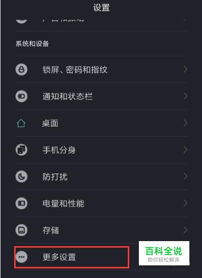 首先要打开手机“设置”,下滑找到“更多设置”,并点击打开设置选项;