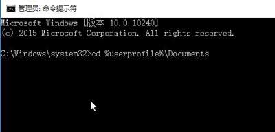 2、在界面中,输入“cd %userprofile%\Documents”,回车即可,如图所示: