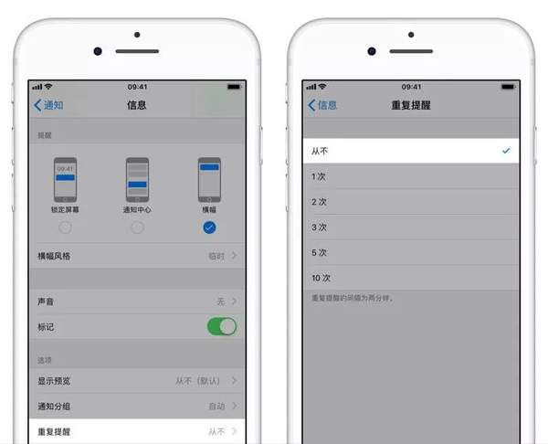 前往「设置」-「通知」-「信息」,将「重复提醒」设置为「从不」;