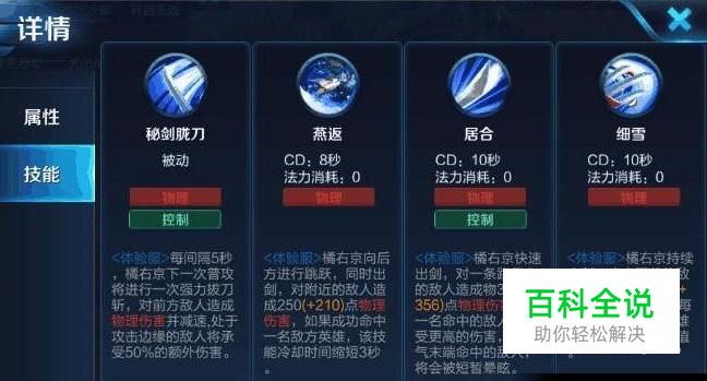 首先要熟悉橘右京四个技能的使用 被动技能秘剑胧刀,被动技能对线消耗很厉害,5秒中完成通攻击到远程攻击.如果是极限距离攻击伤害还会会提高,这个技能带穿透功能.被动好了身上有蓝光出现,这时按普通攻击移动的时候能看到范围。 第一技能燕返,在战斗中拉开和敌人的距离,帮助触发被动和第二个技能极限距. 第二技能居合,攻击力很高,对线时期靠这个技能打消耗。后期团战配合附上被动的普通攻击或者第三技能能够秒掉脆皮 第三技能细雪,攻击力很高,命中敌方还可以回血,也可以提高一下生存能力