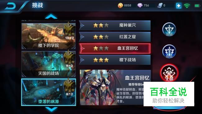 王者荣耀冒险模式中,大师难度的血王宫回忆是最难的几个关卡之一,下面就教你如何通过大师难度的血王宫回忆。