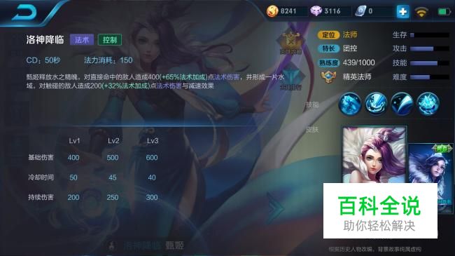 大招-洛神降临,这个控制技能真的是很厉害的,伤害在印记叠加时一直增。如果有英雄想反杀甄姬,那么甄姬发现控制,还可以反杀的