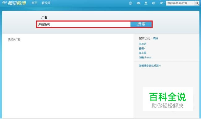 我们打开腾讯微博界面,登陆自己的账号,然后在界面的右上方,找到搜索键,点击打开。