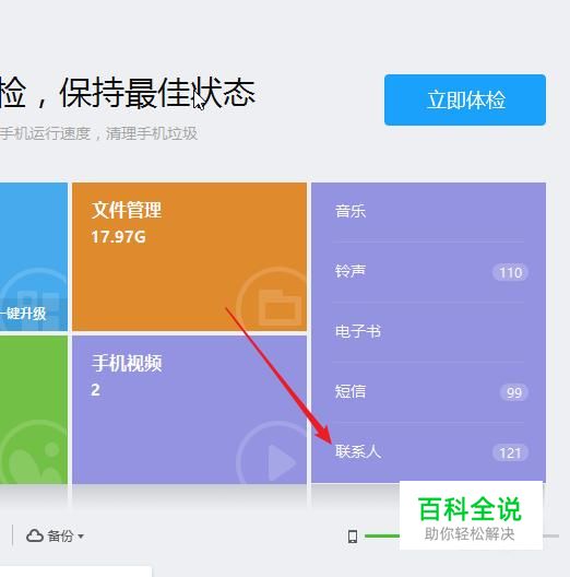手机里的信息同步到电脑后,点击右下角的联系人。