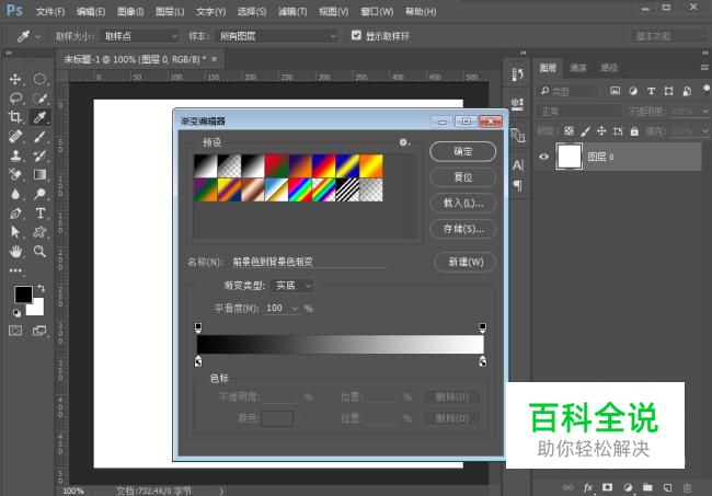 在左侧选择渐变工具,颜色选择黑白渐变。