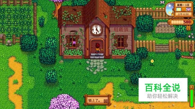 首先简单讲一下如何解锁社区中心,早点解锁早点进行献祭,早点获得温室,对农场的发展是很重要的。解锁社区中心有两个条件,第一个是需要找到社区中心并点一下门。然后它会告诉你门锁上了。(社区中心在进入城镇后的上面)