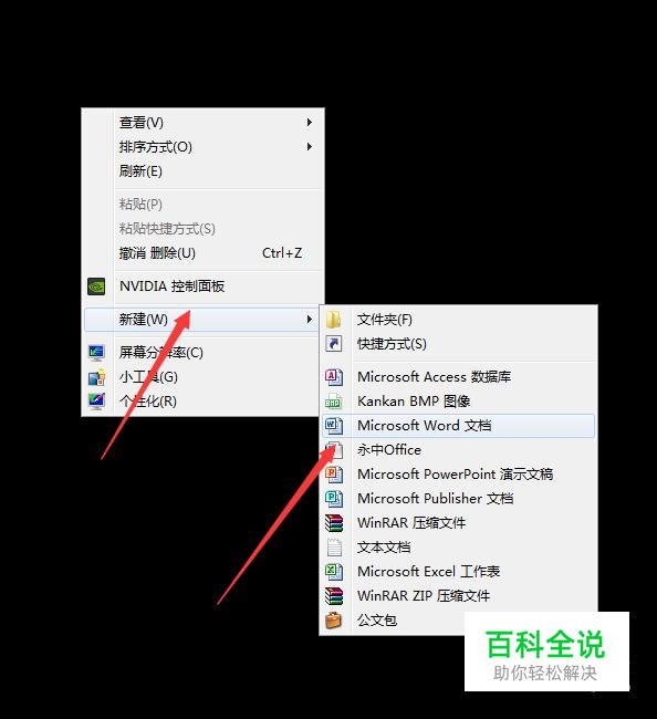 用鼠标右键点击电脑桌面,在出现的栏目点击新建,在出现的选项点击“新建 Microsoft Word 文档”