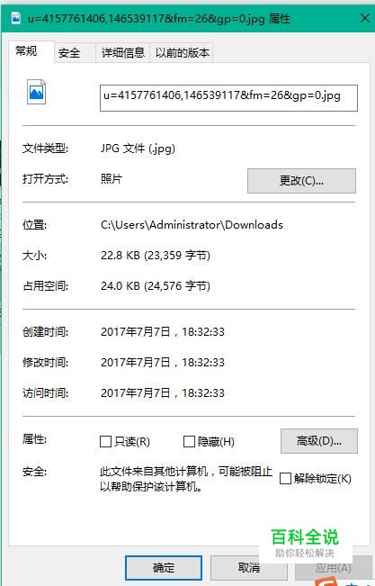 再次右击图片->选择属性->查看文件修的大小,而此时文件已经被缩小了。