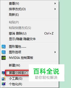 首先我们在桌面空白处点击鼠标右键,然后找到屏幕分辨率选项。