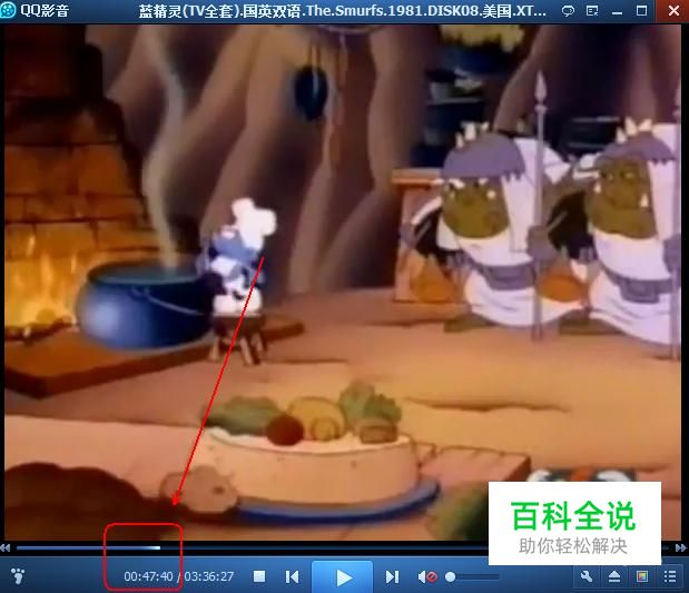 在“QQ影音”的进度条上找到我们想要截取片段的开头位置并暂停视频播放。