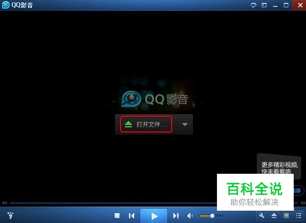 在“QQ影音”的界面上点击“打开文件”按钮载入影片。