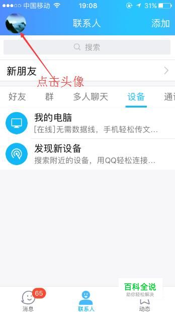 首先点击手机QQ左上角的个人QQ头像。