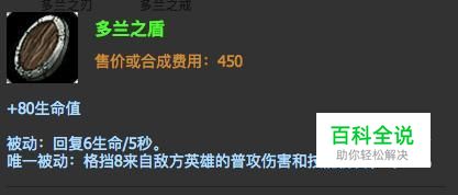 出门装:可以选择多兰盾出门,因为能够增加80生命值,还能够格挡8来自敌方英雄的普通伤害与技能伤害,性价比最高的装备。