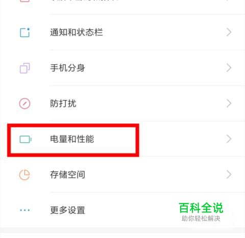 打开手机设置,找到电量和性能。并打开。