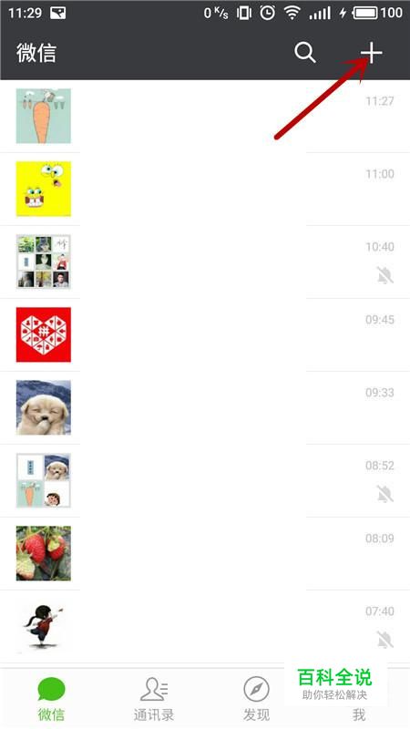 进入微信APP界面,选择“+”