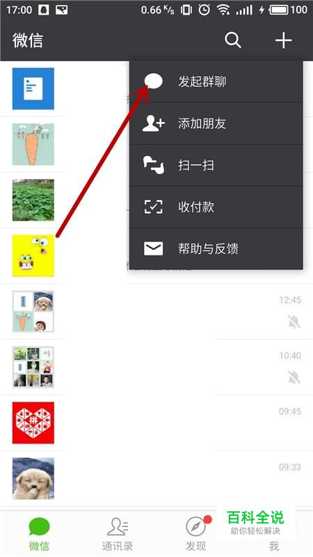 在弹框中选择“发起群聊”