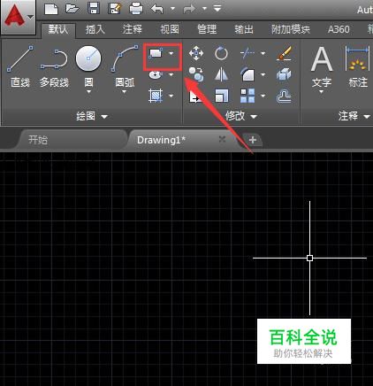 在该界面内找到矩形命令,如图所示: