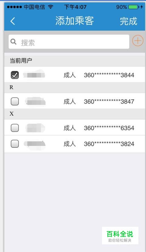 选好了车次以后就直接在车次上点击一下,就会出现添加乘车人的页面,你可以根据需要购买一个或多人车票,如果没有购票人信息,就可以添加购票人信息,然后勾选,不过目前一次购票最多只能选择5人。勾选好以后点击完成。