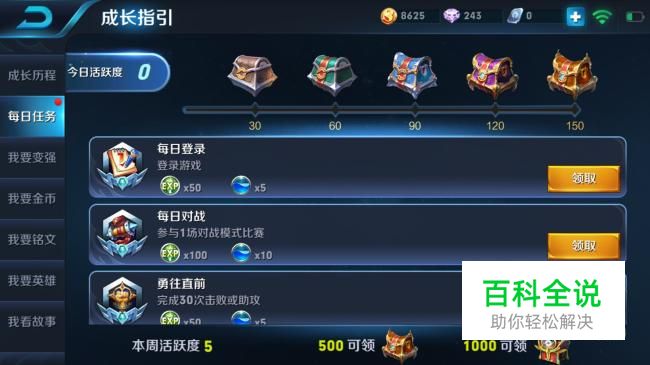 在成长引导里面领取奖励 每次对局进可能多杀地方英雄,这样就能得到更多奖励