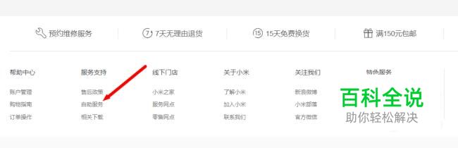 进入官网主页后,向下翻到网页的最下边,找到“自助服务”,点击进入。
