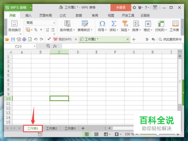 接下来我们的目的为修改“工作表1”的名称。首先,鼠标左键点击选择“工作表1”,如图所示: