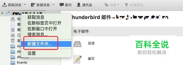 打开Thunderbird,在左边的账号上点击右键,选择‘新建文件夹’