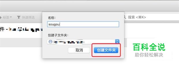 弹出小窗口,我们在这里输入文件夹的名称。然后点击创建按钮。