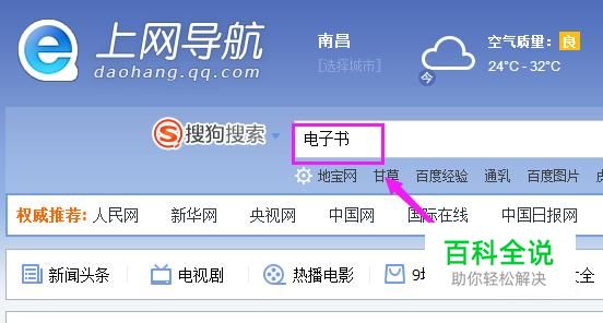 打开我们的电脑,联网,打开浏览器,在浏览器中输入“电子书”,如图所示。