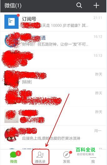 点击“微信”下方导航条上的“通信录”并点击进入。