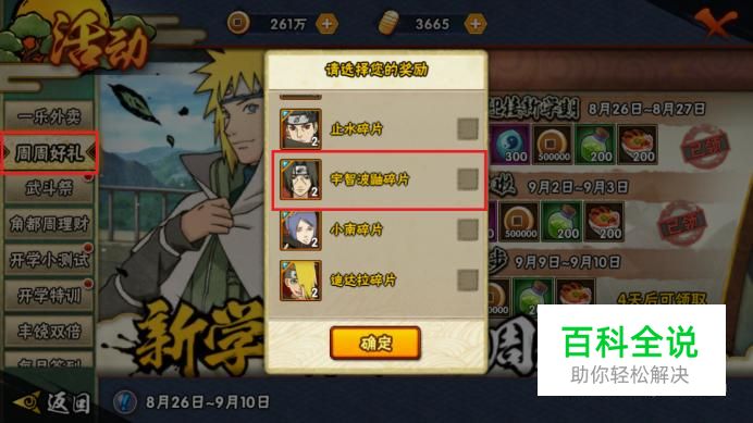当然,我们每天都要把任务做完,打开“奖励”里最后一个礼包也有可能获得宇智波碎片。