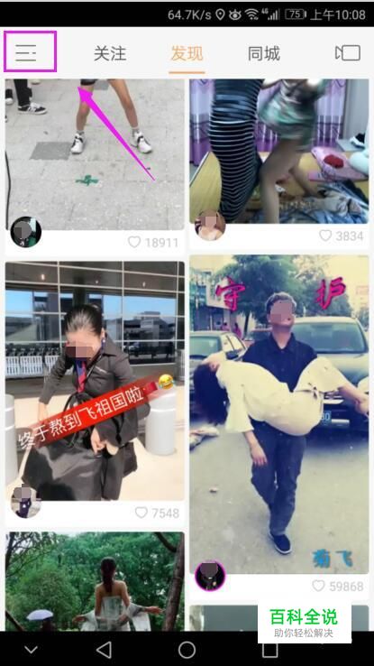 来到了首页,我们点击左上方的三白条,点击下,如图所示。
