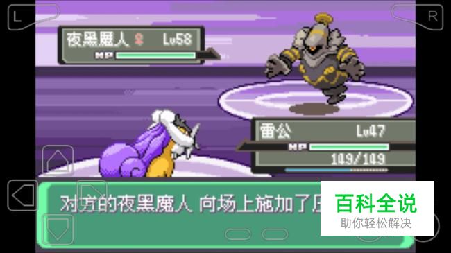 再来就是58级的夜黑魔人,拥有特性压力,加大我们技能PP的消耗,所以我们不仅需要准备好回复生命的药还需要一些回复PP的药。夜黑魔人的技能以影子球为主,还是比较容易对付的。